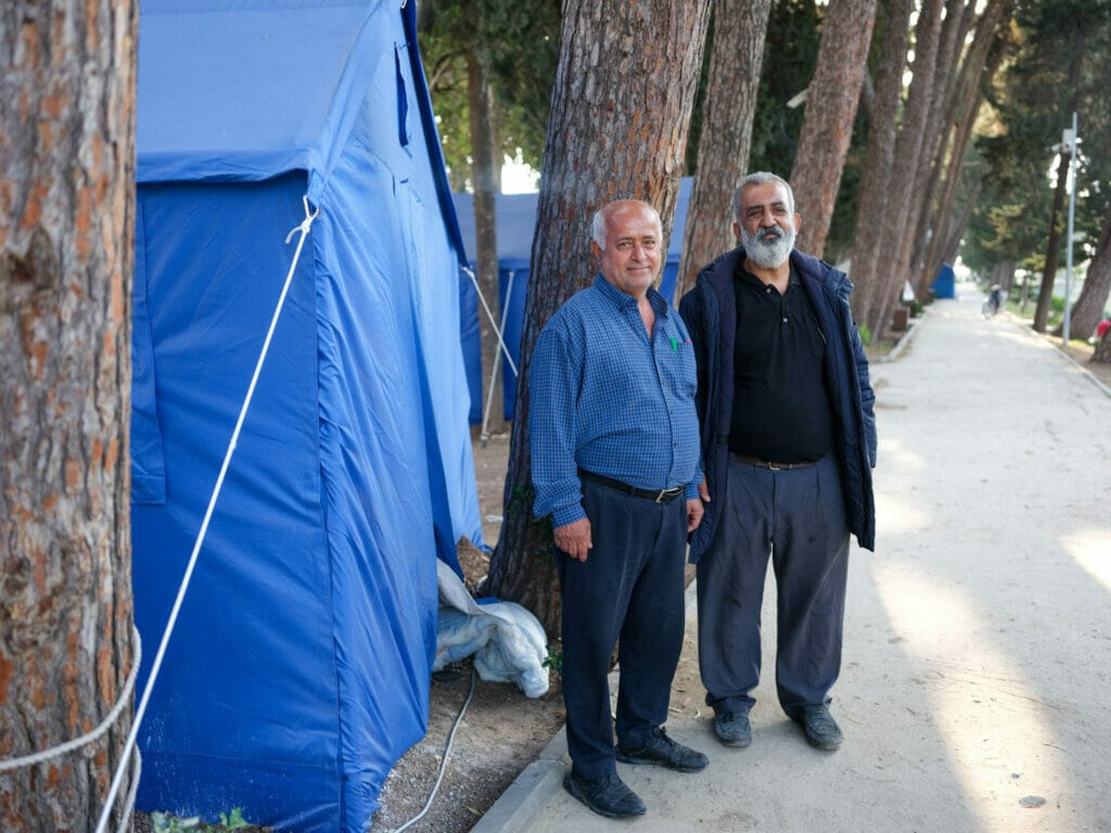Tent neighbor Nuretin Eskiocak joins in the conversation, describing that he lost a daughter and his grandchildren in the earthquake; his daughter’s children. Before that, the situation wasn’t really good either, but better. Now there is no more perspective.