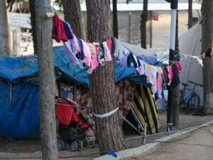 Tent neighbor Nuretin Eskiocak joins in the conversation, describing that he lost a daughter and his grandchildren in the earthquake; his daughter’s children. Before that, the situation wasn’t really good either, but better. Now there is no more perspective.